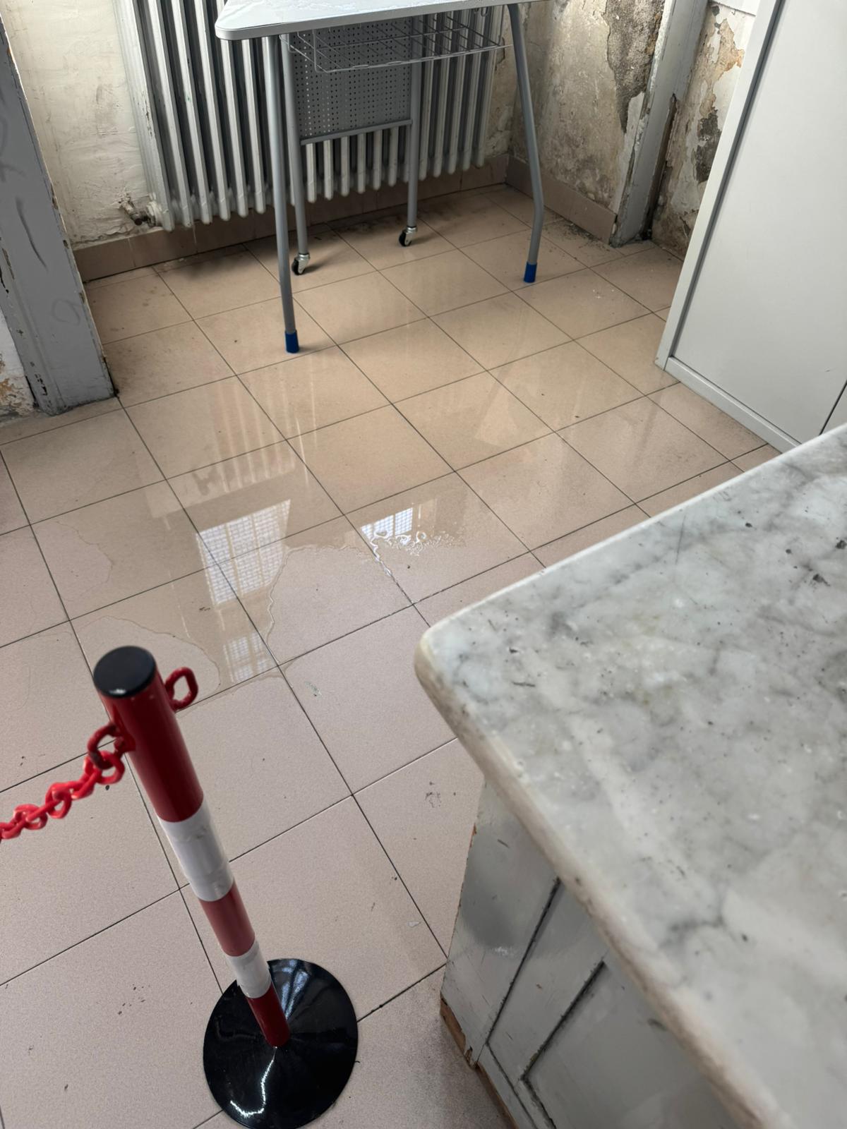 Gli addetti ai lavori avrebbero interrotto la fuoriuscita di acqua dal piano superiore. Tuttavia, gli studenti, stando alla segnalazione, sono rimasti in classe.