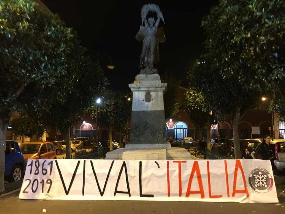 Da uno striscione all’altro, da Pagani a Nocera, da Forza Nuova e CasaPound, per la precisione Piazza Trieste e Trento per un inno al patriottismo e all’unità d’Italia, nei pressi del monumento che ricorda i caduti della grande guerra.