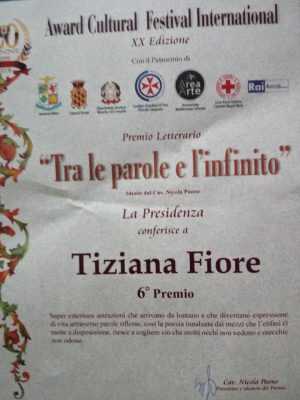 Sesto premio alla XX edizione del Concorso Letterario Internazionale “Tra le parole e l’infinito”, con la poesia “PRIMA CHE IO NASCESSI”. Gran riconoscimento alla poetessa-prof nocerina Tiziana Fiore, con garbo e in silenzio scala le vette nazionali e non.