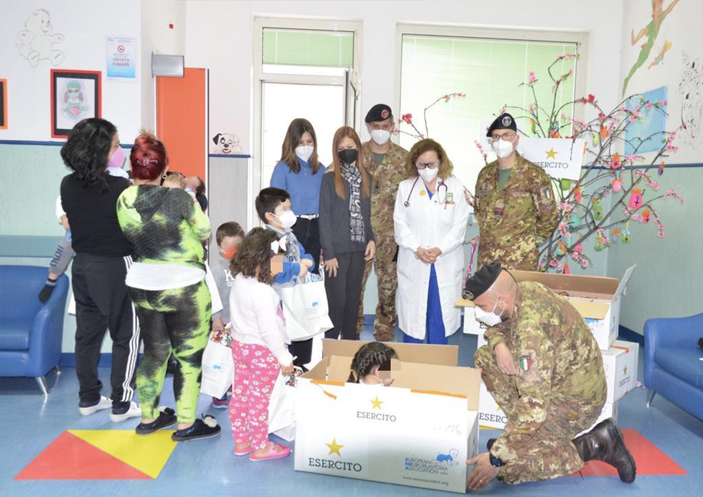 A similitudine di quanto organizzato lo scorso anno, le uova donate sono state acquistate su base volontaria dal personale dell’Esercito nell’ambito dell’iniziativa di beneficenza della ONLUS ENEA (European Neuroblastoma Association), con il patrocinio dello Stato Maggiore Difesa, volta a sostenere la ricerca scientifica per sconfiggere il Neuroblastoma, patologia considerata, dopo la leucemia, tra le prime cause di mortalità in età prescolare.