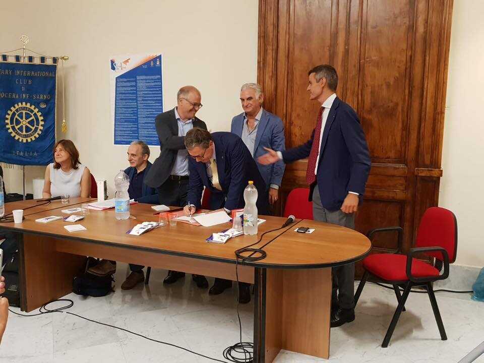 Firma avvenuta el protocollo d’intesa tra il Rotary Nocera Inferiore Sarno ed il Comune di Sarno per l’istituzione, presso i locali della biblioteca Comunale, di una sezione denominata “biblioteca degli autori dell’agro”, primo progetto realizzato in quest’anno sociale dal Club.