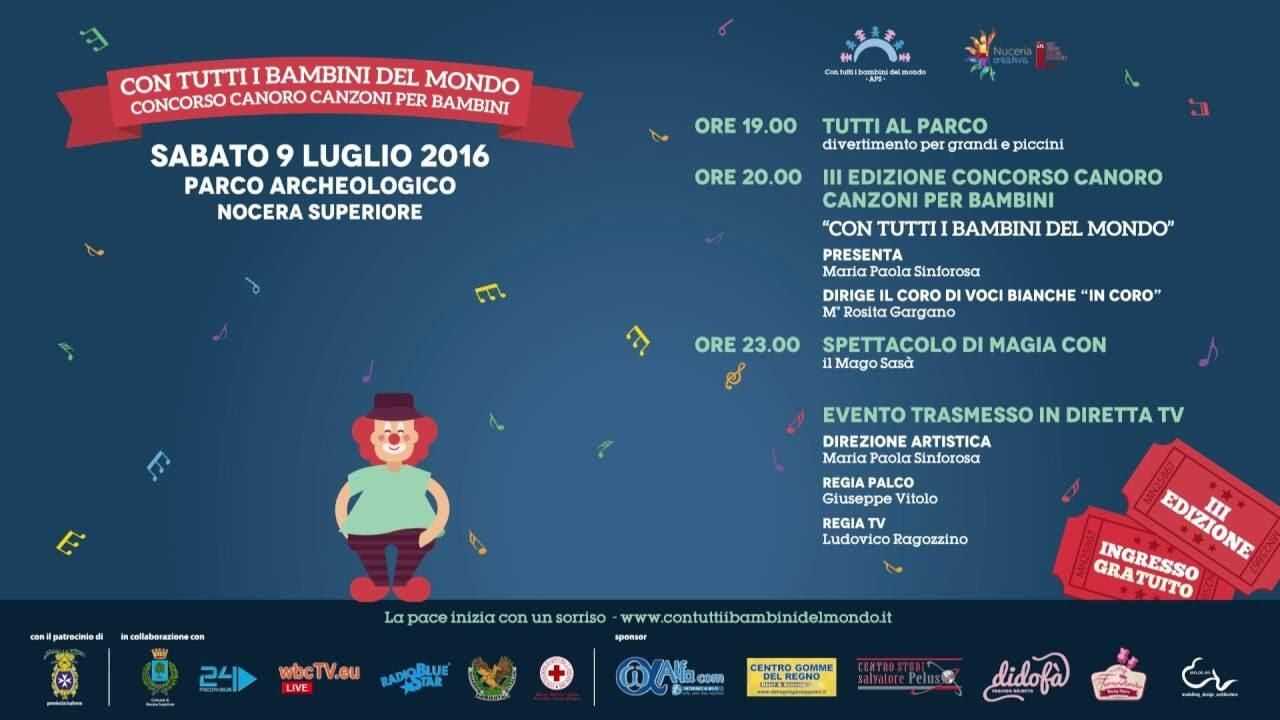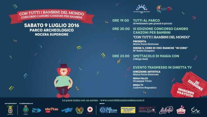 Manca ormai pochissimo al prossimo 09 luglio, data che segna la terza edizione di “Con tutti i bambini del mondo”. Il concorso canoro per bambini che quest’anno si insedia in un contesto organizzativo nuovo, frutto della omonima neocostituita Associazione di Promozione Sociale. La manifestazione si terrà ancora una volta nel suggestivo Parco Archeologico di Nocera Superiore (SA) e vanterà ben due categorie di esecuzione: la prima denominata “Classic” con nove brani in gara e la seconda “Canzone d’Autore” con sette brani in gara. Novità assoluta di quest’anno è l’internazionalizzazione del concorso che vede la presenza di una partecipante svizzera (Fabiana Offreda) e dell’Autore cipriota Roberto Pigro con due brani entrambi in gara nella sezione “Canzone d’Autore”.