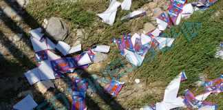 Niente di calcistico, questi colori da queste parti non sono di moda. Come non è di moda la civiltà per il personaggio che si è divertito a gettare sul letto del torrente decine di etichette di barattoli conservieri, pomodori pelati in particolare.