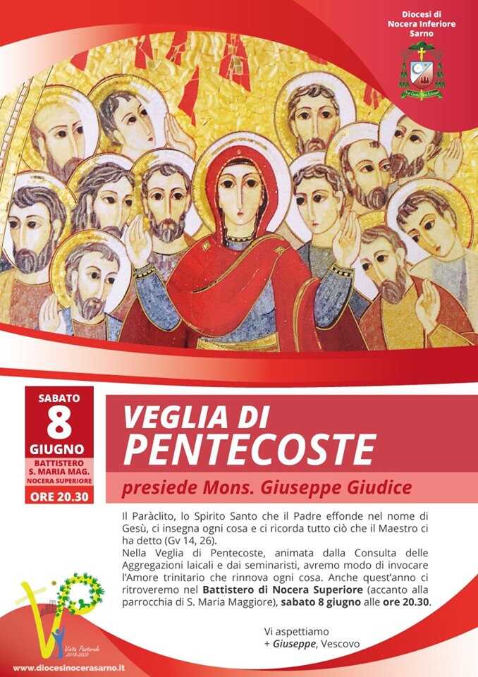 Domani sera, la Veglia di Pentecoste, animata dalla Consulta delle Aggregazioni laicali e dai seminaristi. L’appuntamento è al Battistero di Nocera Superiore, alle 20.30.