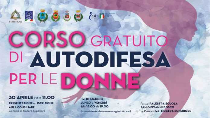 Anche a Nocera Superiore il corso di autodifesa per le donne dell’Associazione Street Kali con la Federazione Italiana Krav Maga, iniziativa da anni realizzata nel comune di Salerno e in molte altre città d’Italia. L’evento è promosso dal Comune di Nocera Superiore, con i Comuni del piano di zona S1_01 Nocera Inferiore, Roccapiemonte e Castel San Giorgio e riconosciuto dall’ASI – ente di promozione riconosciuto CONI.