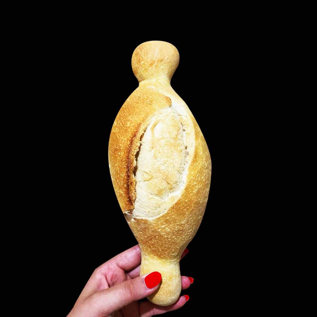 “La palatella – sottolinea Boccia – è l’identità del mio popolo: il mio sangue è fatto di aceto e olio e le mie ossa sono fatte di melanzane e alici. Mi è piaciuto comporre un’immagine a ingredienti – continua Boccia – un simbolo rinnovato per una tradizione autentica di festa che ha fondamenti assolutamente devozionali a cui si compiegano elementi attinenti al cibo, in primo luogo un pane dalla forma tipica ovale con gli estremi che si allungano appena arrotondati, ma nell’ottica grafica una forma senza principio e fine: un volàno che naviga tra aria e terra, a questa rimandano gli ingredienti e altri appuntati nella immagine: olio, aceto, melanzane, e mare: le alici.