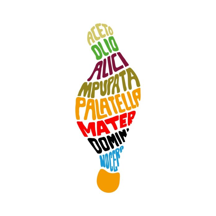 L’ideatore della maglia si occupa di design e illustrazione applicata nel campo del design grafico. Va alla ricerca costante di equilibrio tra essenza e funzionalità. Per questa ragione, nasce una vera poesia, un calligramma, su maglietta. Prevalgono colori vivaci, “la vivacità cromatica – commenta Boccia – serve, appunto, per trasmettere l’entusiasmo e il momento di festa che si celebra a Materdomini”. I nomi scelti per comporre il calligramma sono “aceto, olio, alici, mpupata e palatella”. Un crescendo di nomi che vanno a costituire visivamente, qui la scelta del calligramma, il piatto della tradizione: la palatella.