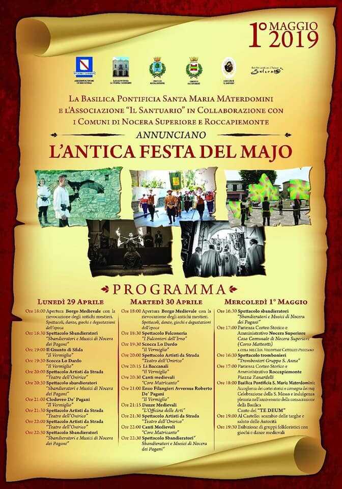 Un viaggio in un’epoca passata con la rievocazione degli Antichi Mestieri, tanto divertimento con Artisti da Strada, Sbandieratori, Falconieri, Trombonieri, Combattimenti medioevali, Danze e Canti dell’ Epoca e la possibilità di degustare pietanze dell’epoca. 29 – 30 Aprile e 1 Maggio, tutti a Materdomini.