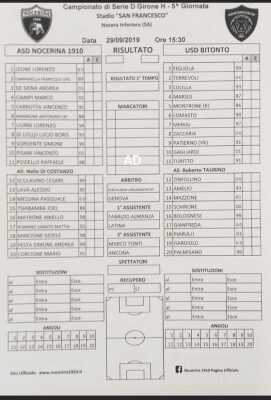 Avete presente quando uno sbaglia tutto quel che c’è da sbagliare, penso di sì, avete presente. Di Costanzo sbaglia formazione. Presenta un 4-2-3-1 privo di senso. Con Ciampi terzino destro, con la scelta di due centrocampisti esperti e di conseguenza la necessità di far giocare Sorgente prima punta, sacrificando i presunti bomber…Poziello sbaglia invece il rigore del possibile vantaggio, concesso per atterramento di Sorgente, messo in moto da un errore di Montrone, da parte del portiere Figliola. E qui sbaglia l’intera panchina della Nocerina nella gestione di minuti importanti. C’è Di Lollo a terra infortunato, meglio farlo accomodare fuori e tirare alla svelta il rigore. Invece no, passano troppi minuti, Poziello forse si innervosisce e tira dagli undici metri facendo un comodo passaggio a Figliola. Anche il Bitonto sbaglia qualcosa. Nel giorno in cui Taurino poteva rischiare il posto – in tribuna c’era visibile Feola – il 3-5-2 canonico pugliese ha il possesso palla ma a ritmi lentissimi, insomma al ritmo Marsili per essere chiari. Pesano le assenze di Lattanzio, Biasion e Vacca ma forse è l’andazzo generale pugliese di inizio stagione a non essere lineare.