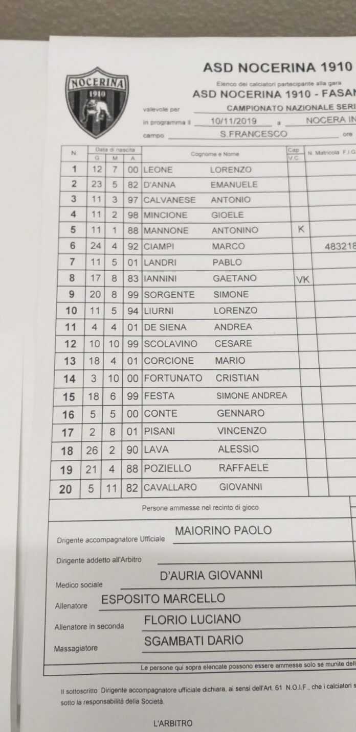 NOCERINA-FASANO 4-4, le pagelle rossonere