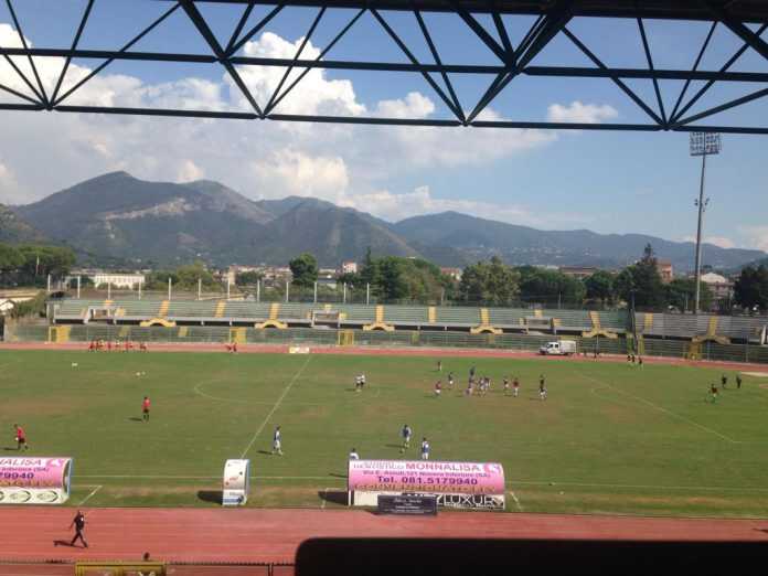 Squadre disposte a specchio: scelta del 3-5-2 per entrambi gli allenatori. Prima segnalazione per il taccuino all’11’: angolo ben battuto da Odierna, testa innocua e fuori bersaglio dell’argentino Salto. La Nocerina cerca di fare la partita ma gli spazi sono pochi, occupati bene dall’avversario calabrese. I movimenti di Orlando e di Odierna creano qualche problema ai difensori di Scorrano: nascono punizioni dagli effetti blandi. Al 28’ prima offensiva del Locri, nata da un fallo non fischiato su Orlando, proseguita da un cross di Foti per la testa di Caruso, impatto post deviazione avversaria finito tra le braccia di Scolavino. Tre minuti dopo, altro pericolo per i padroni di casa: serie di dribbling da parte di Caruso in area rossonera, conclusione bloccata da Scolavino. Prima mossa: Scorrano toglie Binetti, fa entrare Pannitteri, abbassa Condomitti e arretra Libri. Al 37’ bella idea di Odierna che piazza una bordata finita alta di non molto. Prove generali del gol: lo segna Simonetti, approfittando di un clamoroso errore doppio di Pellegrino e Baccilieri in fase di disimpegno: il centravanti di casa ruba palla e poi con freddezza mette a sedere Pellegrino. Nel recupero, punizione di Libri, alzata in angolo da Scolavino, Al 12’ della ripresa Pannittieri fa il gol della domenica, scambia con un compagno e trova una splendida conclusione che termina il giro all’incrocio dei pali alla destra di Scolavino. Difesa di casa nell’occasione ferma e male posizionata, consentendo una serie di passaggi e lasciando troppo spazio. La Nocerina resta in 10 al quarto d’ora: Vatiero rimedia il secondo giallo in pochi minuti. Al 21’il Locri prova a rifare l’azione del gol: s’incunea a sinistra stavolta Baccilieri, conclusione sbagliata. Valzer di cambi per forze fresche in campo. Reazione molossa al 36’: fallo laterale a lunga gittata di Salto, diventa un assist per il colpo di testa di Cioffi, troppo molle per impensierire Pellegrino.