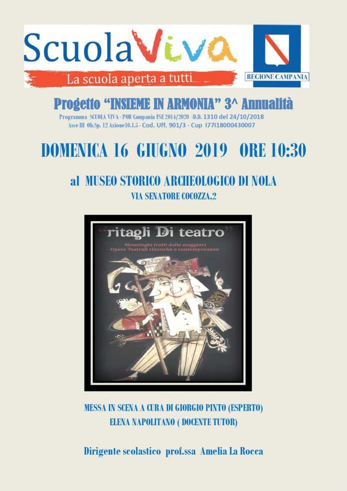 L’iniziativa è a cura dell’esperto di teatro Giorgio Pinto e della docente Elena Napolitano, tutor del progetto che si sviluppa sotto l’egida del Liceo Albertini di Nola, diretto da Amelia La Rocca che nel corso degli anni è riuscita a valorizzare il talento naturale di tanti studenti.  Ritagli di teatro è il frutto del laboratorio teatrale, uno dei moduli del progetto Insieme in Armonia, che per il terzo anno mette in rete le istituzioni scolastiche del territorio.