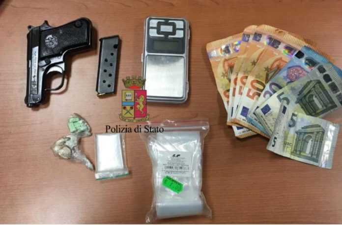 Vistosi braccato, come ultimo espediente, ha tentato la fuga a piedi e, rincorso dai poliziotti, ha abbandonato in strada una pistola che portava al seguito, del tipo Beretta calibro 6.35, recuperata dagli agenti.