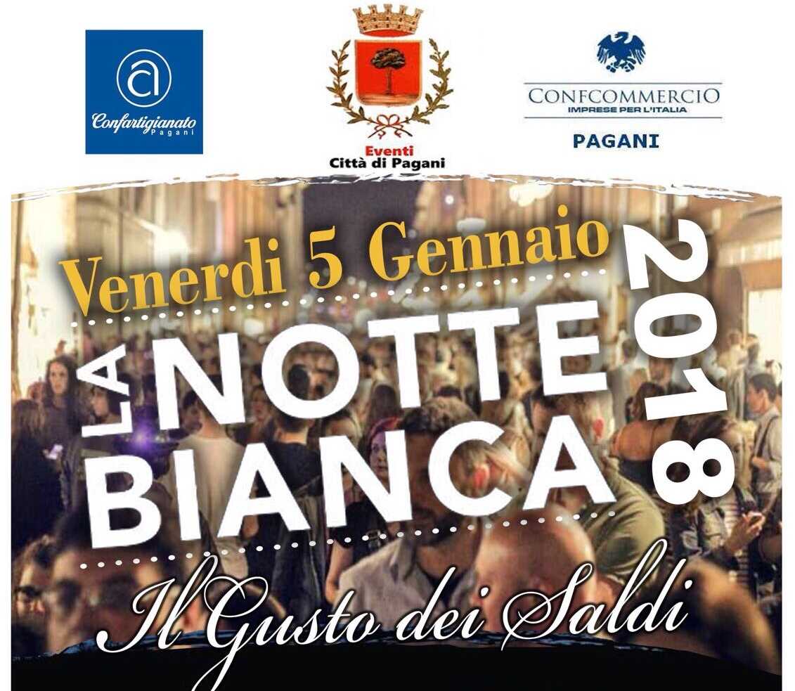 Anche a Pagani ci sarà la notte bianca grazie al lavoro dell’Amministrazione Bottone e alle associazioni del territorio in particolare Confcommercio, Confartigianato e Il Miglio Santo. In attesa della vecchietta più amata dai bambini, negozi aperti fino a tardi, animazione lungo Piazza Corpo di Cristo, Corso Ettore Padovano, Via Marconi, Piazza Sant’Alfonso, Via Cesarano. La Notte Bianca si farà nel giorno dell’avvio dei saldi per incentivare il commercio locale come ha spiegato il Presidente della Confcommercio, Luigi Amendola.” In questo modo- ha affermato Amendola- abbiamo cercato di favorire ed incentivare gli acquisti a tutte quelle famiglie che ancora non hanno fatto acquisti o comprato i regali in questo periodo di festa. Il nostro obiettivo principale resta in ogni caso quello di promuovere il turismo religioso della nostra città per assicurare così una forte ripresa anche del commercio locale da anni in profonda crisi economica”.