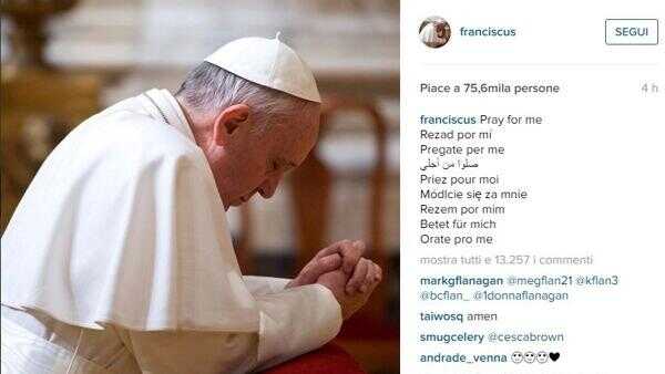 E così, dopo tanta attesa, il 19 marzo alle 12.00 è stato inaugurato il profilo di @Franciscus con una prima foto che ritrae il Papa in preghiera con la didascalia “Pregate per me” in 9 diverse lingue.