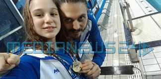 La piccola Chiara, classe 2005, ha chiuso col tempo di 32.57, beffando allo sprint due atlete del Centro Nuoto Nichelino, Elisa Dibellonia e Giulia Vetrano, staccate rispettivamente di 32 e 49 centesimi di secondo. E dopo l’oro vinto ieri, questa mattina Chiara s’è concessa una medaglia bis, ottenendo il bronzo nella specialità 50 metri trasporto manichino, alle spalle di Gaia Cappelli (Centro Nuoto Nichelino) e Camilla Solferino (Accademia di Salvamento).