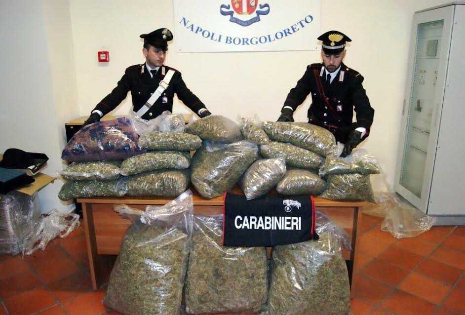 Maxi sequestro di marijuana da parte dei carabinieri della Stazione di Borgoloreto, all’esito di una perquisizione di uno stabile in zona Mercato, a Napoli.