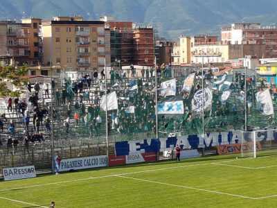Nemmeno il tempo d’iniziare, Paganese già a segno. Piana, di testa, sfrutta un calcio d’angolo battuto da Tazza e sorprende Vassallo. Nuova chance al 6′, traversone di Tazza dalla destra verso il secondo palo, Scarpa manca l’aggancio. Tenta di rispondere il Bisceglie. Triarico ci prova su punizione ma il suo destro a giro sfila a lato. Ottima chance per Cesaretti, imbeccato da un lancio lunghissimo: l’attaccante ha bruciato Markic sullo scatto ma il suo sinistro è finito oltre la traversa. Metà primo tempo superata, iniziano i problemi per la squadra di Erra. Piana rischia l’autogol sul cross di Giron. Al 27′ tattenuta ai danni di Scalzone sul cross da calcio d’angolo. Penalty per i nerazzurri. Sul dischetto Scalzone fa centro e tutto torna in parità. Alla mezz’ora Vassallo si supera su Capece prima (coi pugni) e Parigi poi (coi piedi). Al 38′ 38° – Gli azzurrostellati reclamano un rigore per il contatto tra Cesaretti e Calandra. Sulla lunga rimessa di Tazza ancora una torre di Parigi per il compagno, il cui tap-in però si è spento sul fondo. Al 42′ padroni di casa nuovamente in vantaggio. Destro a giro di Scarpa, un calciatore del Bisceglie (Calandra) devia di testa all’incrocio, dove Vassallo non può arrivare. Paganese-Bisceglie 2-1. Per segnare altro sul taccuino, bisogna attendere la ripresa. Destro centrale di Scarpa, Vassallo riesce a respingere anticipando Tazza.Sinistro da oltre 25 metri di Giron. Santopadre è attento e blocca. Djolou manca una clamorosa opportunità per pareggiare. Cross di Calandra da destra, il giovane attaccante si coordina ma colpisce malissimo di testa a botta sicura. Palla fuori. Il Bisceglie resta in 10. Cartellino rosso all’indirizzo di Djolou per un fallo di reazione su Piana a palla lontana. 72° – Bravo Santopadre sul destro di Triarico. Il portiere della Paganese è stato poi ammonito per una reazione su Starita, che era finito giù. Destro debolissimo di Starita dall’interno dell’area. Santopadre blocca a terra. Pur con l’uomo in più, la Paganese soffre più del dovuto. Triarico va in porta, Santopadre smanaccia ancora in corner. La Paganese supera di misura il Bisceglie Tra sette giorni basterebbe un pari in Puglia al ritorno per assicurarsi la finalissima playout, presumibilmente contro la Lucchese, che all’andata ha superato il Cuneo per 2-0.