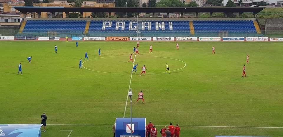 Si inizia con l’iniziativa di Loviso, che direttamente su calcio d’angolo prova la conclusione in porta, palla che scheggia la parte alta della traversa e si perde poi sul fondo. Retropassaggio per Baiocco, sulla traiettoria è presente Scimia che calcia in porta: Baiocco respinge con i piedi. Conclusione dai 25 metri di Morselli, respinge in tuffo Baiocco. A furia di insistere, i calabresi vanno a segno al quarto d’ora. Pallone perso da Capece, ne approfittano gli ospiti con Scimia che lascia partire una conclusione dalla distanza, pallone all’angolino con Baiocco apparso in ritardo. Erra decide di passare alla difesa a quattro con Sbampato a destra, Stendardo e Panariello centrali, Carotenuto a sinistra. Nuovamente Loviso su calcio d’angolo, conclusione direttamente in porta e Baiocco con i pugni respinge. Cross dalla destra di Soomets per Scimia che di testa manda la sfera a fil di palo. Traore semina il panico sulla sinistra, crossa a rimorchio per Scimia che prova la conclusione: deviazione in corner da parte di Stendardo. Al 32′ Paganese vicina al pari. Sugli sviluppi del corner seguente, Capece in area per Panariello che sotto porta prova a beffare di testa Savelloni, il quale nella circostanza è strepitoso a respingere la sfera. Il pareggio arriva dieci minuti dopo.Punizione dalla trequarti di destra di Capece sul secondo palo per Sbampato che di testa beffa Savelloni. Il sorpasso arriva all’alba della ripresa. Sugli sviluppi del corner seguente, alla battuta Capece per Diop che spizza di testa beffando Savelloni. Grande giocata di Gaeta, che supera un avversario e si presenta al limite dell’area, serve Alberti sulla sinistra: l’attaccante perde palla per un presunto fallo da rigore. Calcio di punizione di Scarpa, Savelloni in tuffo respinge: sulla ribattuta Sbampato a due passi dalla porta manda incredibilmente fuori. Arriva il tris per i padroni di casa. Azione insistita sulla destra, palla per Caccetta che lascia partire un cross basso sul quale Diop di destro trafigge Savelloni. Scimia si libera bene al limite dell’area, poi lascia partire un diagonale che sibila l’incrocio dei pali. Blaze e Rossini atterrano Alberti, l’arbitro decreta il penalty.Dagli undici metri Alberti non sbaglia. E c’è tempo anche per il quinto gol. Traversone dalla trequarti di destra di Bonavolontà per Diop, Savelloni in uscita respinge: palla che giunge sui piedi di Schiavino che a porta vuota piazza la palla sotto la traversa.