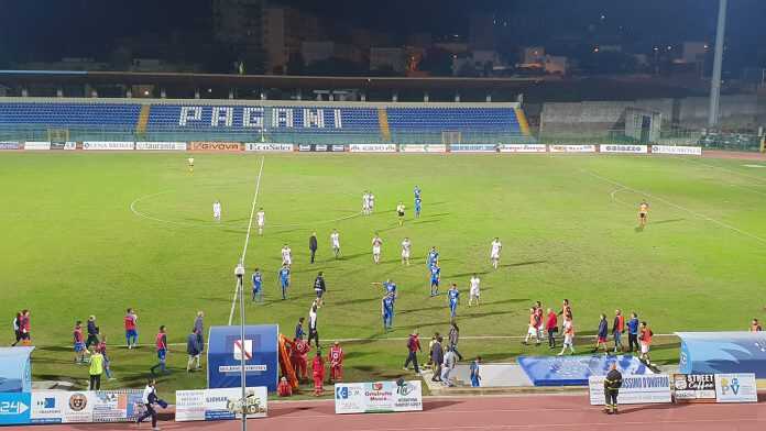 Ripresa, i padroni di casa giungono subito al pareggio dopo una bella azione manovrata, si accende la gara. Capece scodella in mezzo per Stendardo che per un soffio non inquadra la porta. I padroni di casa stanno attaccando a testa bassa per trovare il pari. Scarpa serve un pallone d’oro a Stendardo, Greco respinge miracolosamente. Schiavino! Questa volta la Paganese trova la rete meritata del vantaggio, grande secondo tempo per i padroni di casa. Capece ci prova da fuori area ma non inquadra la porta. Altobello di teta per poco non trova il pareggio, trema la Paganese in questo finale di gara. Ciotti falciato in area, calcio di rigore per la Vibonese. Sul dischetto si presenta Allegretti che non sbaglia. Allegretti, dopo aver realizzato il penalty, viene espulso per qualche parola di troppo al direttore di gara.