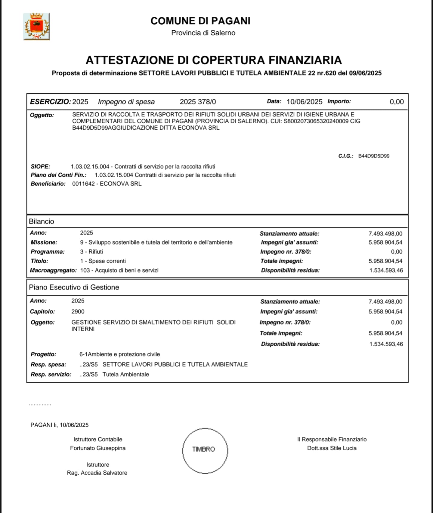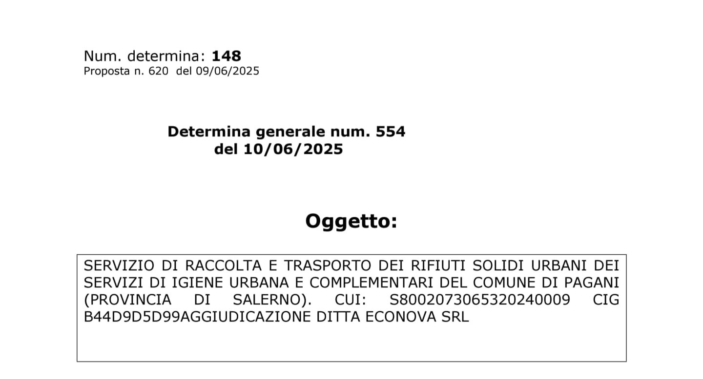 È ufficiale: sarà la ditta Econova Srl, con sede a Torino, ad occuparsi del servizio di raccolta e trasporto dei rifiuti solidi urbani e dei servizi complementari di igiene urbana nel Comune di Pagani per i prossimi due anni. L’appalto, del valore complessivo di 7.119.446,90 euro oltre Iva, è stato aggiudicato con determina dirigenziale numero 554 del 10 giugno 2025, a seguito di una procedura di gara avviata nel novembre 2024. Alcuni sindacati avevano segnalato, nei giorni scorsi, la presenza anticipata di personale riconducibile a Econova presso il cantiere Sam. Durante l’ultimo consiglio comunale, il sindaco ha dichiarato di non essere nemmeno a conoscenza della gara d’appalto, definendo “tendenziosi” i riferimenti emersi nei giorni precedenti che riconducono ai sopralluoghi di Econova. Il primo cittadino allude al coinvolgimento recente di Econova in un’indagine giudiziaria nel Comune di San Vitaliano. Secondo le notizie riportare di recente, la Procura di Nola ipotizza un sistema di gestione clientelare di appalti e assunzioni. Coinvolti il direttore tecnico e il direttore commerciale di Econova.