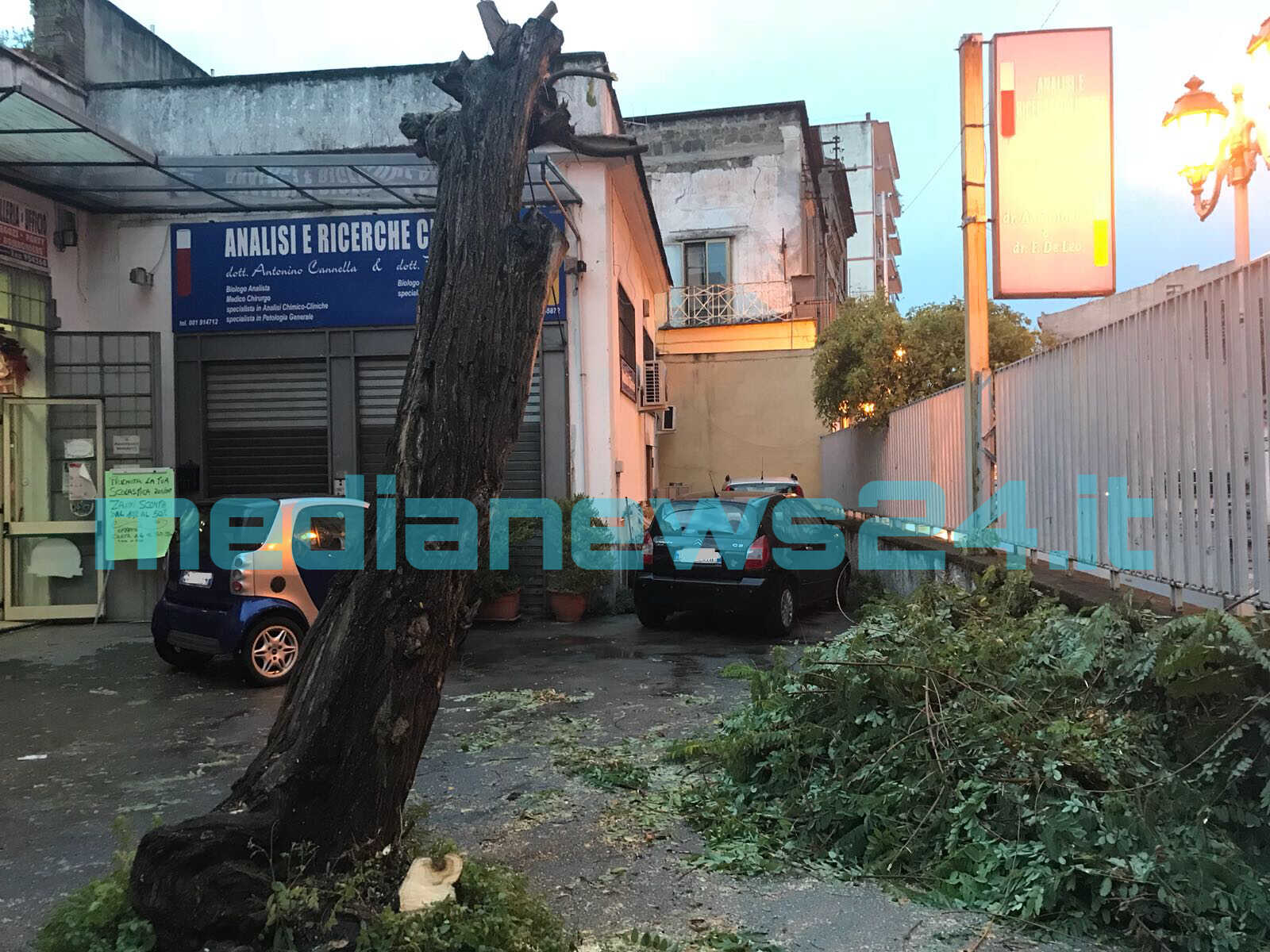 Pagani. Bomba d’acqua, un albero si spezza e finisce in strada
