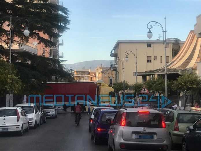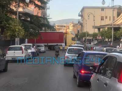 Pagani. Camion sbaglia manovra all’incrocio, traffico in tilt