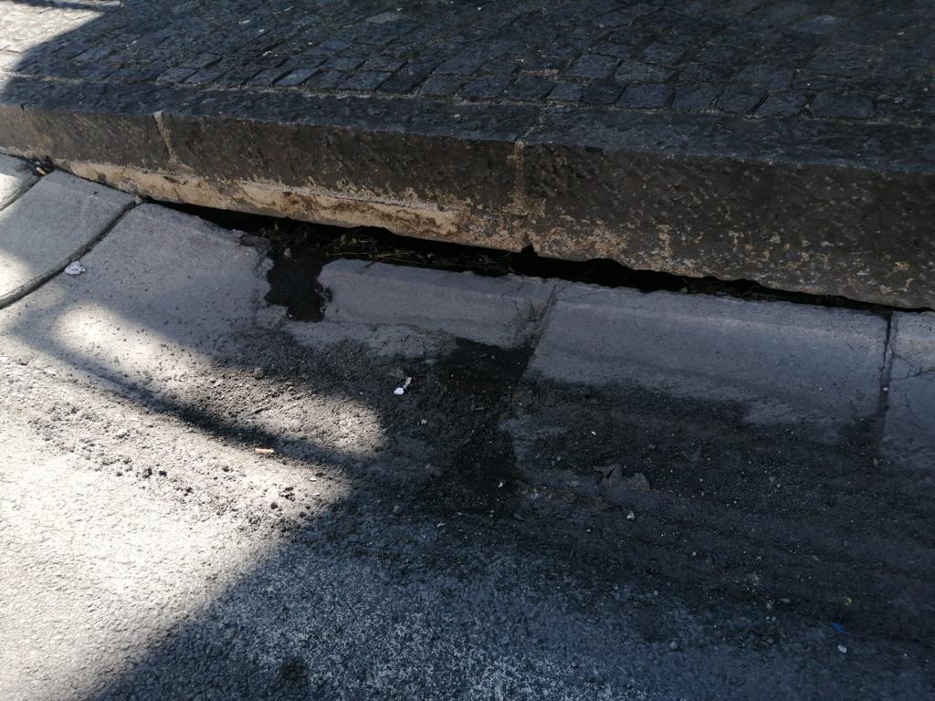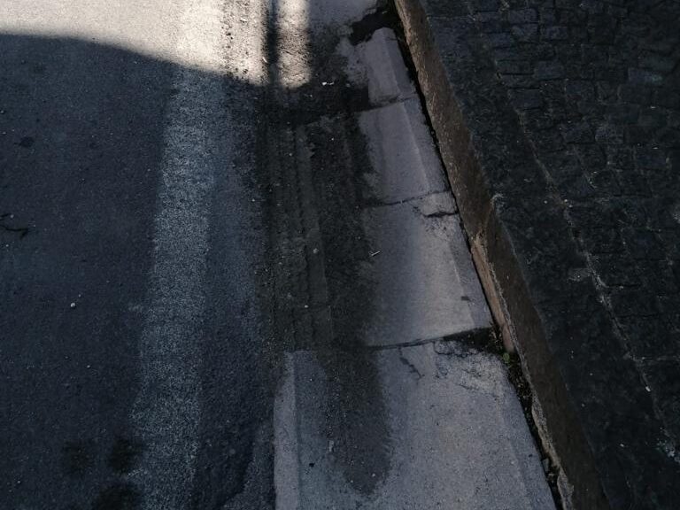 È strano che la canaletta stia cedendo, in quanto si tratta di un canale di scolo e quindi non transiterebbero i veicoli così da generare dei problemi alla strada. Potrebbe essere che i lavori di manutenzione da parte della ditta di riferimento non siano stati realizzati bene.