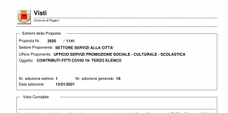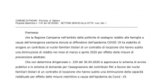 E’ stata pubblicata questa mattina sull’albo pretorio del comune di Pagani la determina n.18 “Contributi fitti Covid 19 – Terzo Elenco.