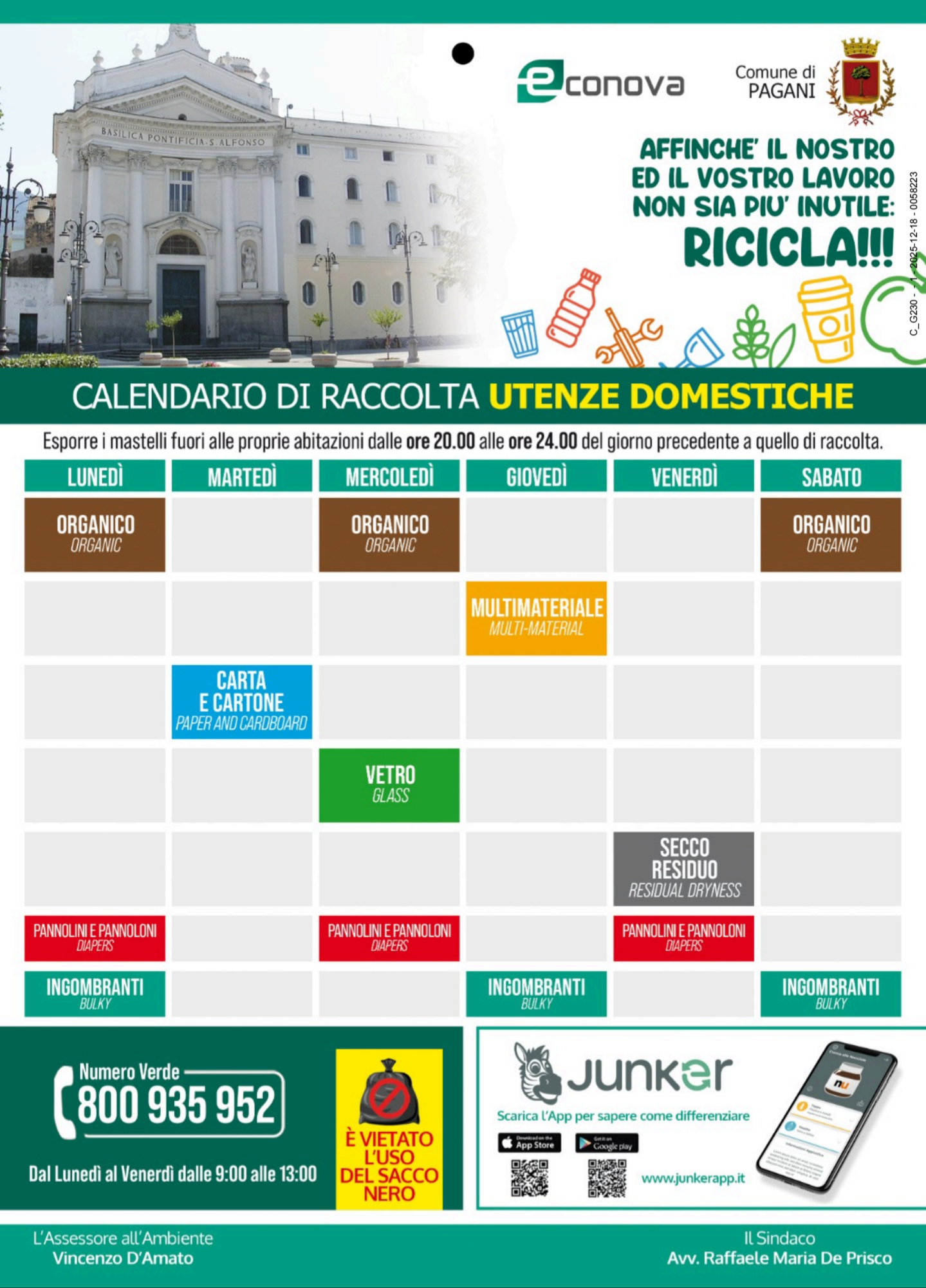 La comunicazione arriva dall’ufficio tecnico del Comune di Pagani – Settore lavori pubblici e tutela ambientale – che ha confermato la definizione dei nuovi turni di conferimento.