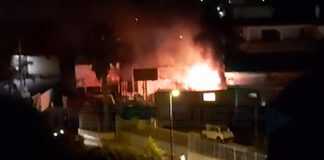 Ci segnalano alle ore 22.50 un forte boato con conseguente incendio in via Taurano, fiamme altissime come si vede dalla foto. Sul posto i Vigili del Fuoco.