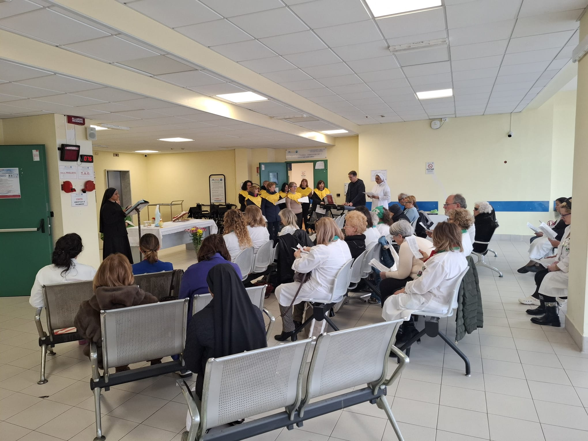 Un pomeriggio all’insegna della solidarietà e del raccoglimento quello vissuto oggi presso l’ospedale “Andrea Tortora” di Pagani, qui dove c’è il reparto oncologico. In occasione della Giornata mondiale del malato, il presidio ospedaliero è diventato il cuore pulsante di un’iniziativa dedicata a chi soffre, ai loro familiari e a chi, ogni giorno, opera in prima linea nei reparti di ematologia e oncologia. Ad accompagnare questo sentito momento, ci sono state le note della Corale Tommaso Maria Fusco.