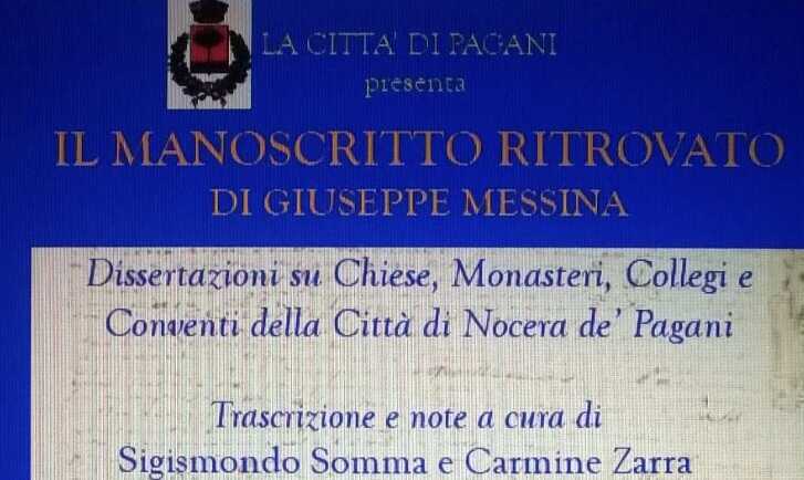 Si terrà il prossimo venerdì  alle ore 18.00 presso l’Auditorium Sant’Alfonso Maria de’ Liguori a Pagani la presentazione del libro “Il manoscritto ritrovato”. L’opera realizzata da Giuseppe Messina arriva in città per essere presentata anche ai tanti paganesi invitati pressso la struttura di Piazza Sant’Alfonso.