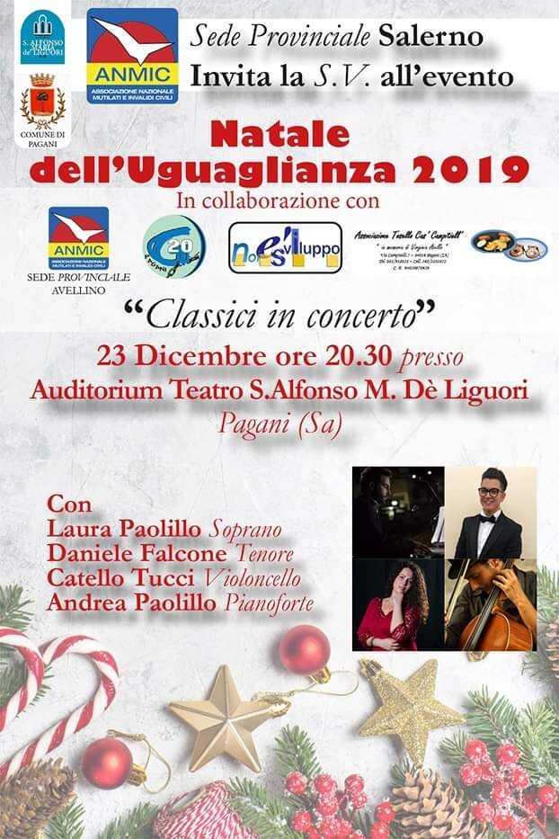 ANMIC Salerno invita a tutti gli associati alla V° edizione del “NATALE DELL’ UGUAGLIANZA” presso l’Auditorium teatro S.Alfonso M. Dè Liguori, per scambiarsi gli auguri di un sereno e felice Natale, con un panettone Natalizio.