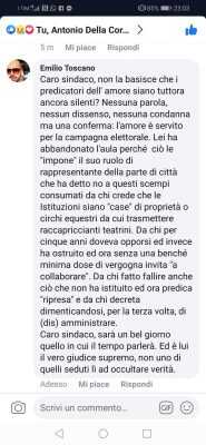 Caro sindaco, sarà un bel giorno quello in cui il tempo parlerà. Ed è lui il vero giudice supremo, non uno di quelli seduti lì ad occultare verità. Sono le toccanti parole, usate alla fine di un lungo intervento su Facebook, da parte dell’ex segretario cittadino del PD nei confronti di Salvatore Bottone.