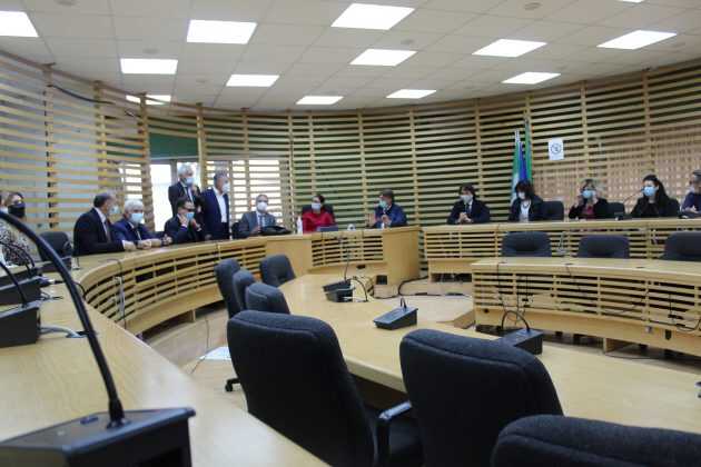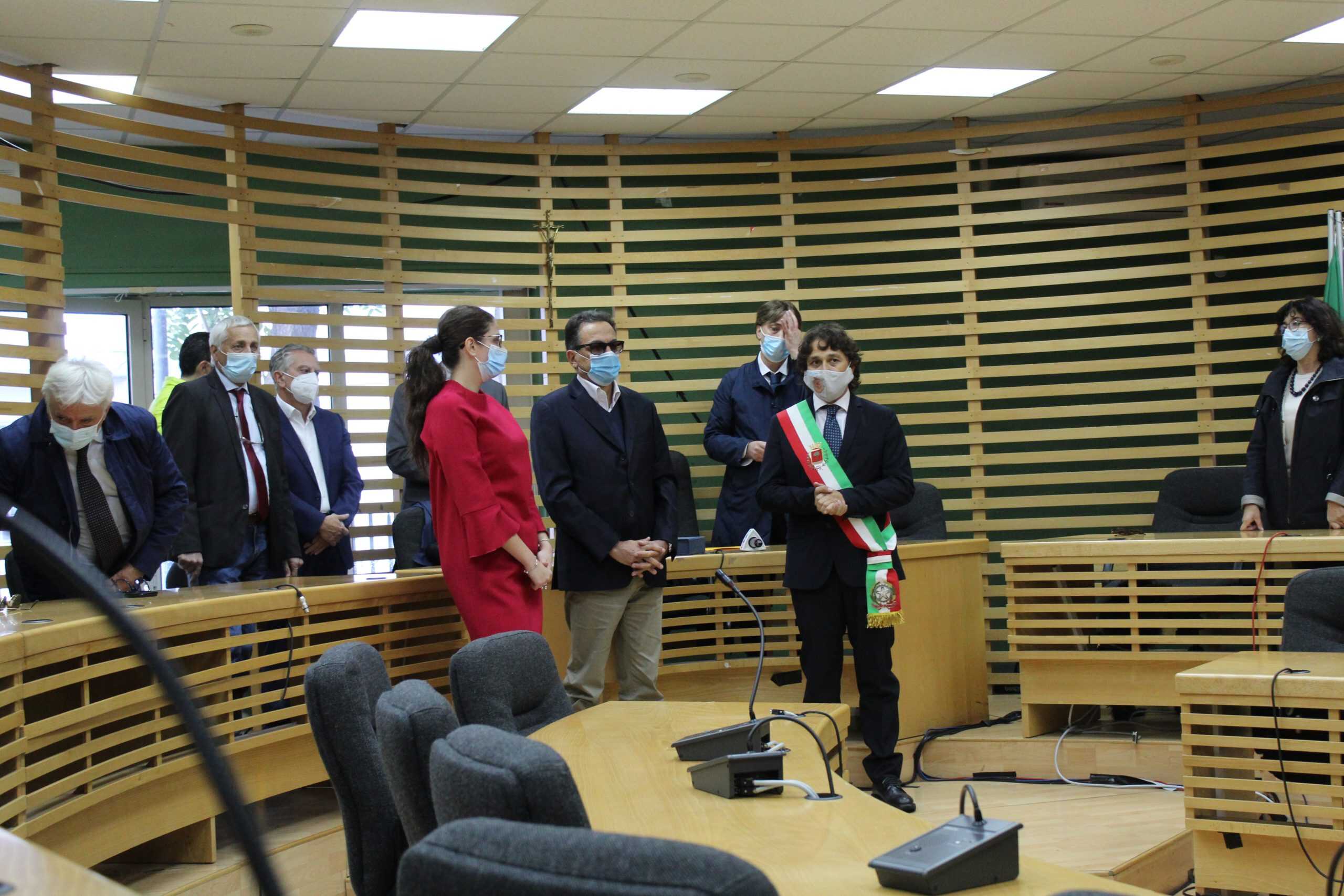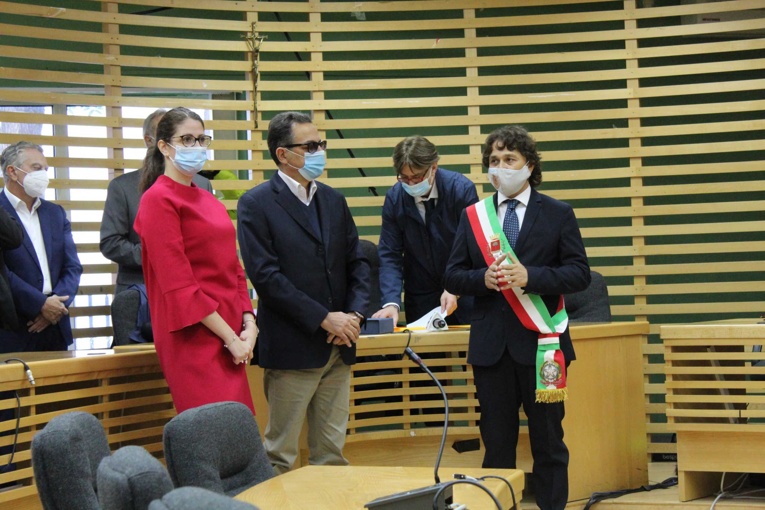 Una cerimonia che si è svolta nel rispetto delle norme anti-covid e che ha visto la sala Marcello Torre accessibile soltanto alla stampa.