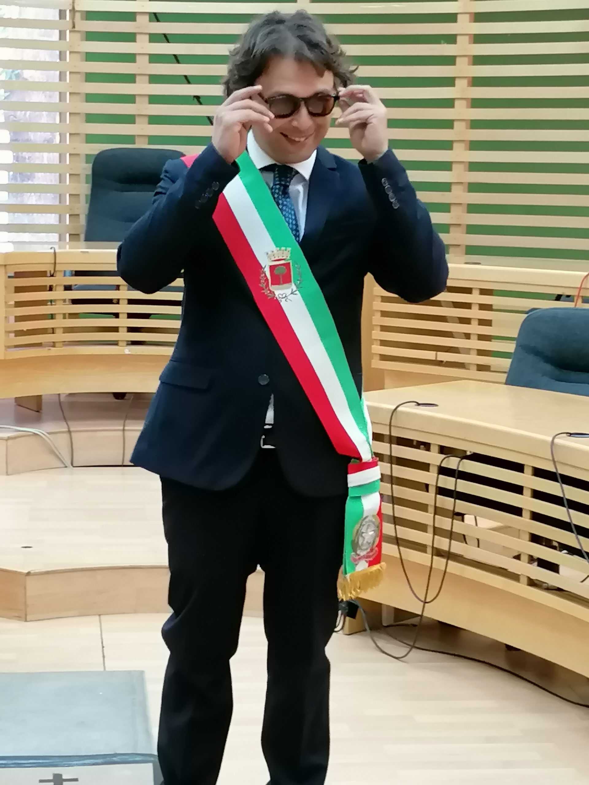Visibilmente emozionato, Lello De Prisco, alla cerimonia di proclamazione ufficiale alla carica di primo cittadino, questa mattina nell’aula consiliare di via Pittoni a Pagani.