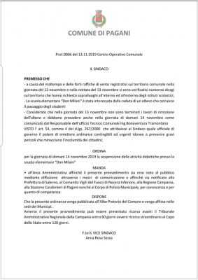 Alla Sant’Alfonso, i problemi si erano verificati già con la prima ondata novembrina del maltempo. Il dirigente scolastico ha spostato due aule in altre libere. Nel frattempo l’Utc sta provvedendo alla risoluzione dei problemi. Domani resterà chiusa la Don Milani, a causa del protrarsi dei lavori di rimozione dell’albero caduto.