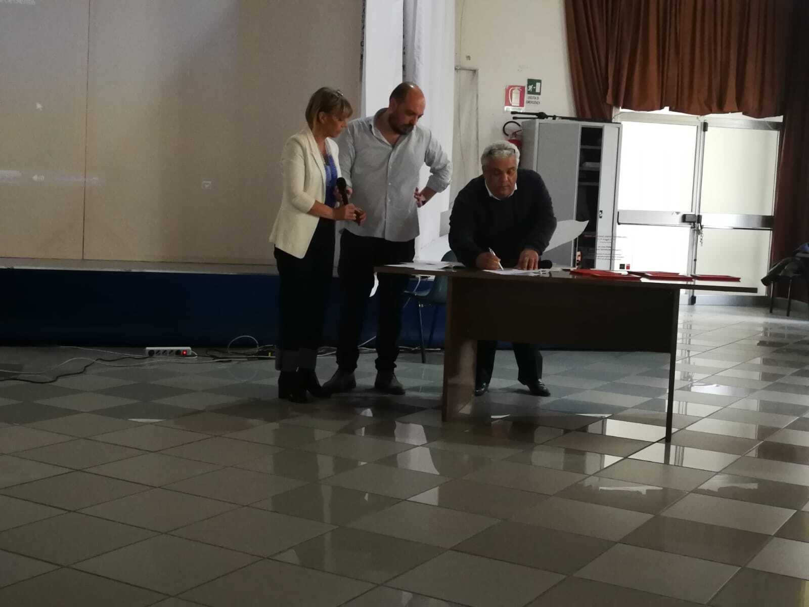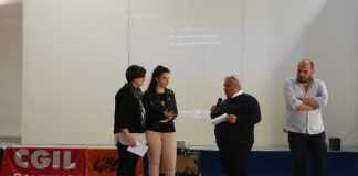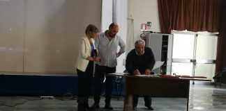 Ezilda Pepe, dirigente scolastica Mangino, legge un passo da L’Ordine del Tempo, libro da consigliare, scritto da Marco Rovelli. «Tutti i figli di Adamo formano un solo corpo, sono della stessa essenza. Quando il tempo affligge con il dolore una parte del corpo (anche) le altre parti soffrono. Se tu non senti la pena degli altri, non meriti di essere chiamato uomo » . Queste parole sono scolpite nell’atrio del Palazzo dell’Onu. Parole antiche, di Poeta e di Mistico, Saādi di Shiraz, Nove secoli fa un persiano musulmano esprimeva un pensiero che è ebraico e cristiano. La contaminazione nel nome della legalità e della giustizia sociale è ua sfida vera, quella che parte dal presente per estendersi al futuro. Ecco allora il bel pomeriggio al Mangino, con la gran figura di Don Ciotti ma non solo con lui. Libera, coi volti belli e noti di Garofalo e Torre, assieme alla Cgil rappresentata dal mitico Sessa. Firmano un protocollo, intendono dare sempre più forza ai valori in comune e sempre più anima e corpo al ricordo indelebile di Tonino Esposito Ferraioli, il cuoco-sindacalista ucciso dalla camorra la sera del 30 agosto 1978 per aver denunciato che in mensa si voleva servire carne marcia agli operai. La Cgil premia una ragazza del Pittoni con una borsa di studio. Libera evidenzia il lavora di tutto l’anno con la scuola. Non progetti ma percorsi. Quello di Santa Marina a Policastro è un genuino percorso di scuola media voluto con forza da Maria De Biase a base di buone pratiche ambientali, orti, ecomerende, cibi genuini. Ma c’è anche l’alfabeto della legalità, dove con la B al positivo c’è la bellezza e al negativo c’è il bullismo. Poi si passa al Liceo Alfonso Gatto di Agropoli, con la prof Rosanna Ferrari e gli studenti che hanno coniugato nel loro percorso memoria e storia. Segue il Pittoni di Pagani con la Simeone, in uniforme scolastica la brava Giusy Ruggiero ricorda le dodici edizioni della rassegna enogastronomica,una gara tra realtà di tutta Italia che porta il nome di Esposito Ferraioli, studente come lei dell’alberghiero, solo che ai suoi tempi doveva andare a Salerno per imparare cucina, accoglienza e tradizioni. E ancora, il Liceo Tito Lucrezio Caro di Sarno, che con cortometraggio bellissimo, dal titolo Napoli-Sarno, mostra con forza di immagini e parole un viaggio fatto dagli studenti per conoscere luoghi, parenti e amici di chi ha dato la vita per contrastare la mafia. Tocca al Pascal di Pompei, illustra il percorso fatto in materia di cittadinanza monitorante, con tanto di ricorso agli open data, per conoscere qualcosa di fondamentale, quanti fondi arrivano a chi ci governa, anche nel piccolo, e come vengono realmente spesi. Infine i padroni di casa del Mangino con il cortometraggio dedicata a Felicetta, mamma di Peppino Impastato, per il percorso Adotta un giusto. Momento nuovamente toccante con la seconda proiezione del corto TONINO di Padovano e Guerritore, toccante e anche da ferita ancora aperta, visto che mandanti e assassini non sono mai stati presi e giudicati ma li conoscono tutti, come dice Tonino nel corto, e consola poco, anche se è un giusto riconoscimento, l’attesa di 40 anni prima di veder riconosciuta dallo Stato la classificazione del delitto del ’78 come delitto di mafia. Il passato ricordiamolo ma cerchiamo di lasciarcelo alle spalle. soprattutto se il futuro è fatto di tanti ragazzi in gamba ed impegnati come quelli visti ed ascoltati oggi.Il Premio Antonio Esposito Ferraioli al Mangino significa installazione di una pietra di inciampo per un giovane migrante morto annegato nel Mediterraneo con una pagella cucita sul cuore. Un gesto simbolico e potente, che va oltre ogni schieramento, almeno lo speriamo.