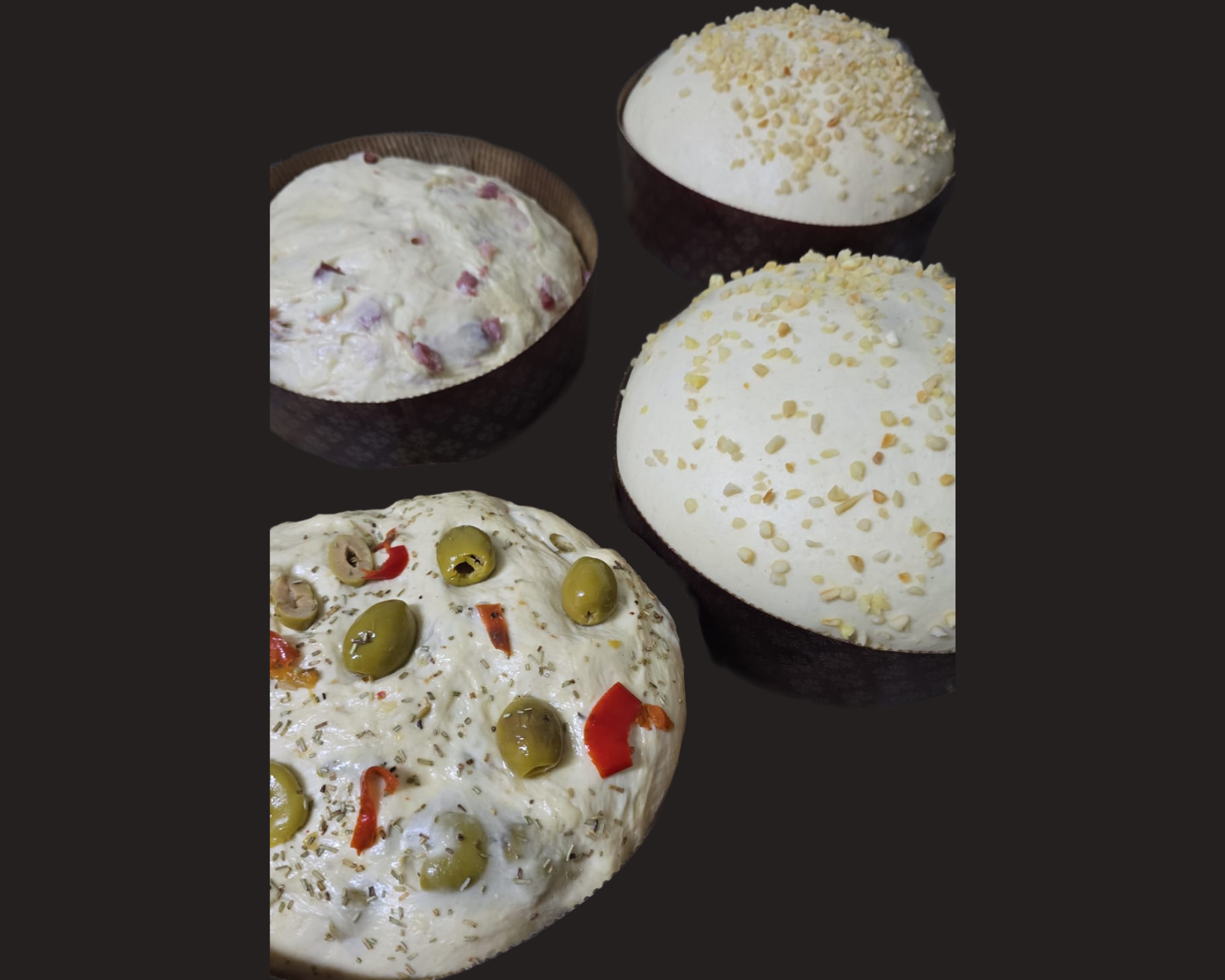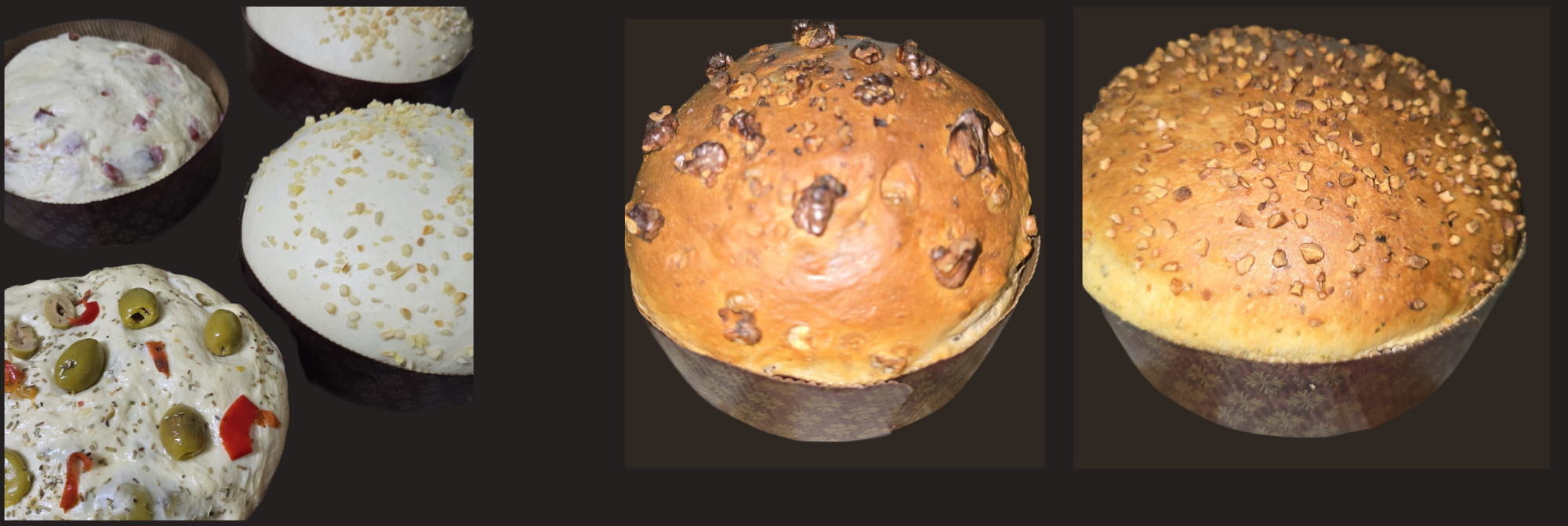 I panettoni presenti negli store: pesto, basilico e mandorle dolci; alle noci; alle olive; broccoli e salsiccia; salumi e mozzarella; il classico da farcire a scelta.