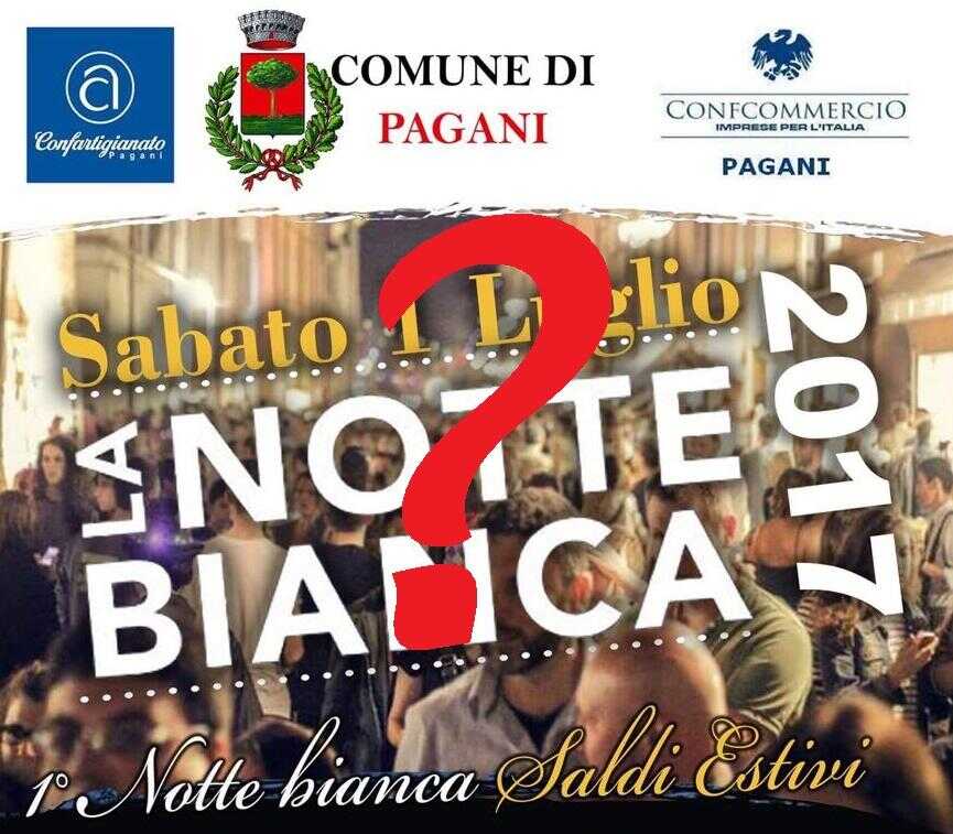 È polemica nella città di Pagani per l’imminente “Notte Bianca – Saldi Estivi” in programma il prossimo 1 luglio a partire dalle ore 19.00.
