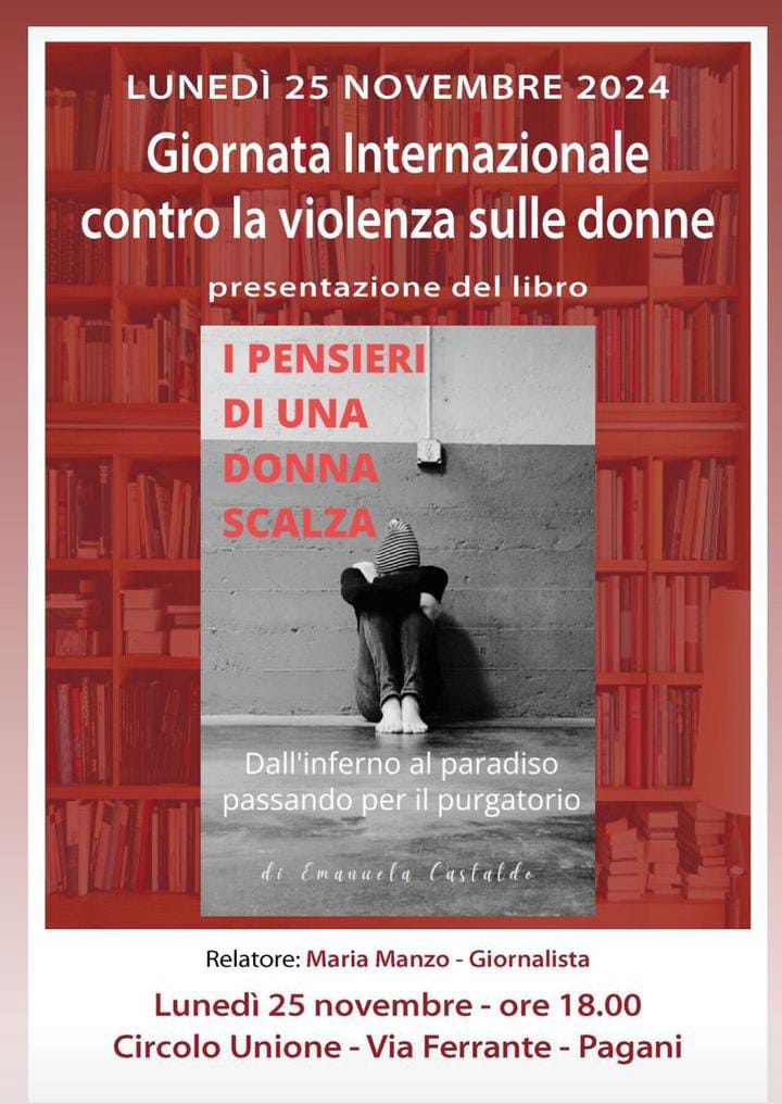 Il testo di Emanuela Castaldo dal titolo “Pensieri di una donna scalza. Dall’inferno al paradiso passando per il purgatorio” sarà presentato dall’autrice il 25 novembre alle ore 18 al Circolo Unione. Emanuela Castaldo ha vissuto il suo calvario o, per citare il richiamo dantesco del titolo, il suo viaggio infernale passando per il cerchio dei violenti. Il violento era la persona più cara a lei, colui con cui ha condiviso 16 anni, un tempo molto lungo. La donna subiva violenza fisica e psicologica, ha visto più volte la morte: subendo 2 tentati omicidi e 1 tentato suicidio. Segue la fuga coi figli, la paura di essere presa dal suo ex marito, poi ci sono le varie soste che infine l’hanno portata a “riveder le stelle”. Tuttavia lo Stato, dal canto suo, non sempre è attento a fatti simili, spesso rischia di diventare, con i suoi ingranaggi poco oleati, quasi complice di un’ulteriore violenza verso la vittima. Dunque, Castaldo non spiega solo il suo libro, ma anche le contraddizioni avvertite dallo Stato, oltre che sottolineare le iperboliche voci utilizzate dai mass-media per chi commette violenza.