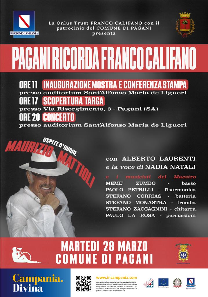 Alle ore 17.00 ci sarà la scopritura della targa in memoria di Franco Califano, presso via Risorgimento n.3 .