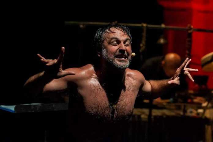 sia giusto lasciar sopravvivere questa città o se sia più giusto che questa città compia il suo destino suicidandosi tra il fuoco e la lava. Napucalisse è un’invettiva con l’anima di una preghiera, un’invocazione del fuoco per bruciare di pietà e di speranza. Con l’innocenza di un fauno e la collera di una bestia, Borrelli incarna lingua e tumulto di una Napoli che si fa archetipo e pulsa dentro la terra: archeologia di memoria, futuro e sedimento di quell’antro ribollente che è il teatro.
