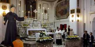 Ieri la giornata è stata molto intensa: celebrazione presieduta dal vescovo monsignor Giuseppe Giudice, poi adorazione del Santissimo Sacramento e poi processione (anche se interrotta) di Tommaso Fusco. In rappresentanza del Comune di Pagani, con la fascia tricolore istituzionale, l’assessore Francesca Del Cedro.