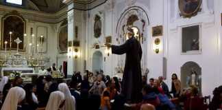 Il tempo, purtroppo, non è stato clemente: tutti speravano che la pioggia, all’uscita di Tommaso Fusco dalla chiesa di San Francesco di Paola, si fermasse, e invece non è stato così. Il santo, bagnato, ha fatto presto rientro nella sua comunità, accolto comunque da tantissimi applausi e sentimenti di fede. Felicissime le Figlie della Carità del Preziosissimo Sangue, ordine monastico fondato proprio da Tommaso Maria Fusco.