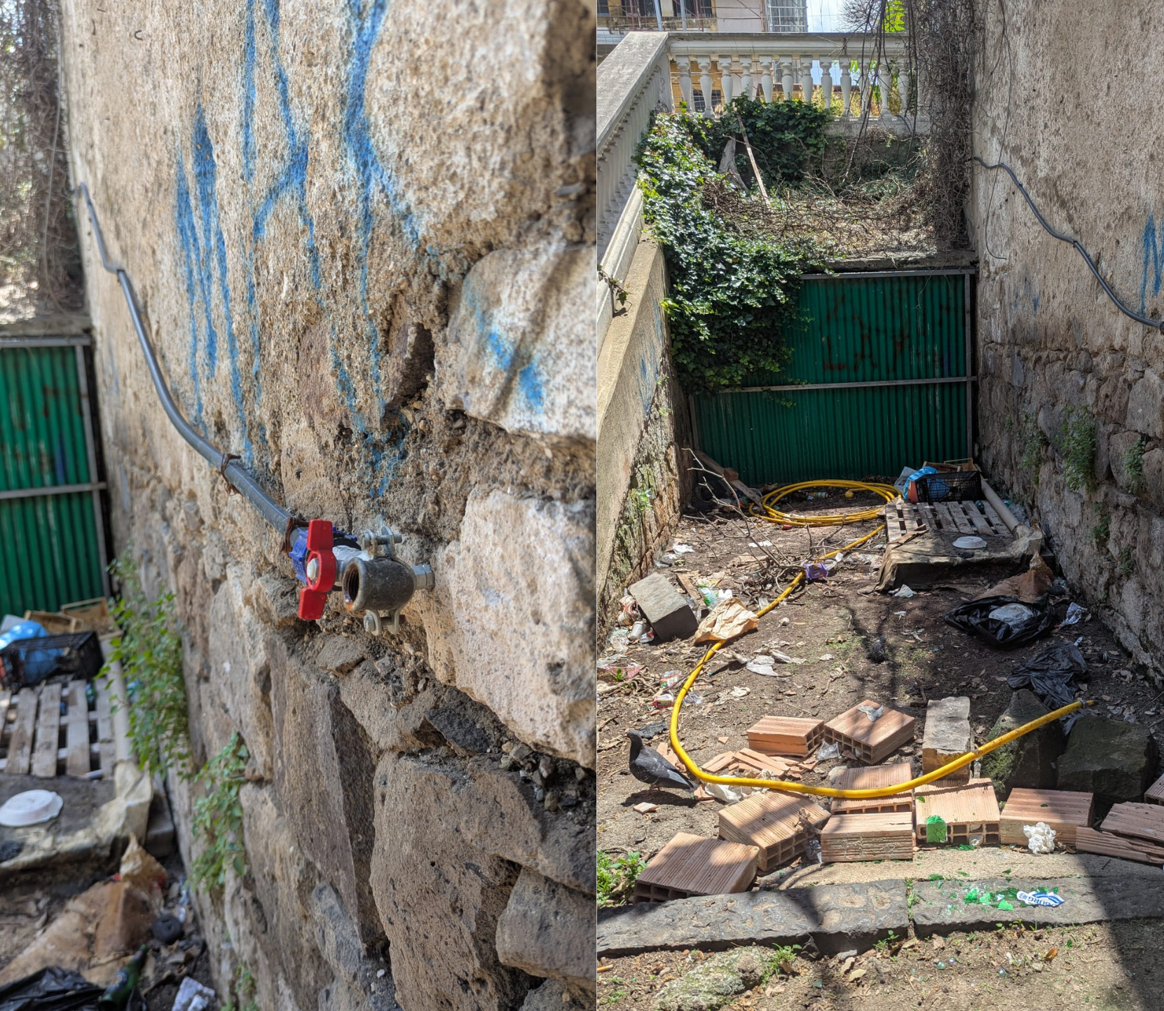 Da sinistra a destra: rubinetto e rifiuti vari.