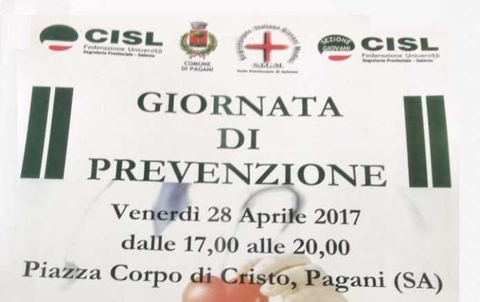 È questo l’obiettivo che si è prefissato Cisl Università Federazione di Salerno in collaborazione con la Sezione Giovani Cisl Federazione Università, il Segretariato Italiano Giovani Medici e patrocinata dal Comune di Pagani. L’iniziativa sarà presentata giovedì 27 aprile alle ore 10.30 a Palazzo San Carlo nel corso di una conferenza stampa dal titolo “Salute e prevenzione: bisogna fare di più”.