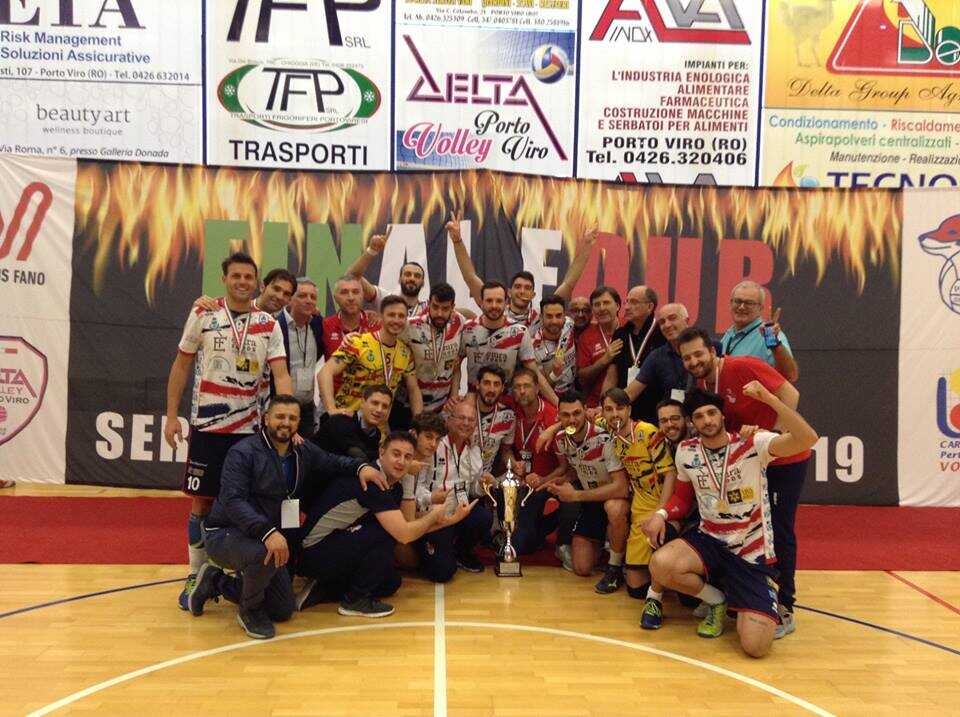 L’Emra Foods Gis Pallavolo Ottaviano si è aggiudicata la Final Four di Coppa Italia di Porto Viro battendo in finale 3-1 Caronno Pertusella in una finale combattuta solo nei primi due set. Arriva l’argento per la squadra di Mario Canzanella, grande ex Gis. Medaglia di Bronzo per Fano che nella finalina ha battuto 3-1 i padroni di casa di Porto Viro. La squadra di coach Libraro entra cosi nella storia del volley Nazionale e campano. Dopo quasi 30 anni la Coppa Italia torna in Campania. L’ultima volta era stato lo Sparanise a vincere la Coppa.Grande festa e commozione per tutti i ragazzi ottavianesi che hanno lottato, vinto e meritato una Coppa storica. La partita è stata testa, sentita. Una partita che era un occasione unica da non sbagliare. La Gis parte subito forte con Scialò e Enrico Libraro sugli scudi. Il margine di vantaggio rimane sempre invariato e la Gis porta a casa il primo parziale 25-21. Caronno non ci sta a essere la vittima sacrificale della finale e parte Fort con un 5-0 che risulterà decisivo. La Gis prova a risalire e impatta sul 11 pari ma Canzanella trascina i suoi verso il successo nel secondo set 22-25.Da questo momento non c’è più partita. Caronno crolla fisicamente e Ottaviano vola via. In pochi minuti il divario tra le due squadre diventa ampio e l’Emra Foods Gis Ottaviano si ritrova sul 2-1. E’ il set decisivo. Il set della storia. Si sente nell’aria che il pallone pesa macigni. L’inizio set è sempre Gis che vola anche 14-8 ma la tensione gioca brutti scherzi e Caronno prova a rientrare. Il miglior giocatore della Finale Scialò trova due ace decisivi che staccano definitivamente i varesini. Al terzo match point Enrico Libraro trova il punto che chiude la partita e fa esplodere la festa rossoblù.