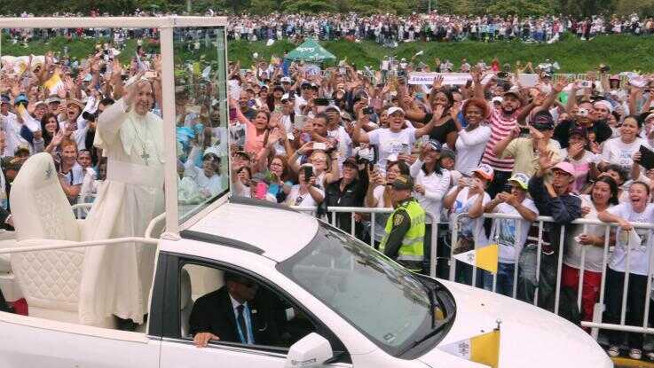 Papa Francesco ha subito un piccolo colpo al sopracciglio e allo zigomo destro quando cercava di salutare un bambino durante il viaggio sulla papamobile a Cartagena, in Colombia. Il Pontefice si è fatto male con la copertura in vetro del veicolo e una goccia di sangue ha macchiato l’abito. Il comandante della Gendarmeria vaticana, Domenico Giani, ha curato prontamente il Papa che ha continuato le sue attività nella città colombiana.
